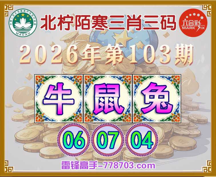 103期:【北柠陌寒】 🍖三肖三码🍖【鼠兔】【06.07.04】开:牛06