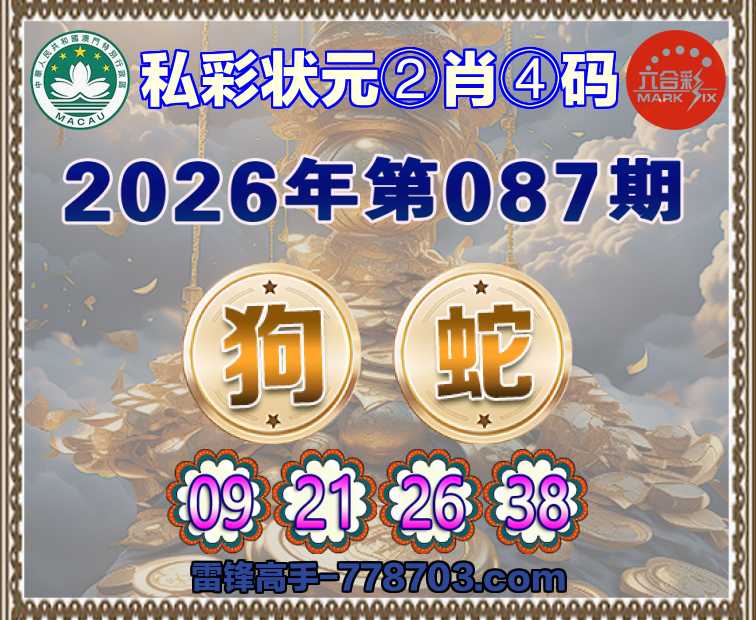 087期:《私彩状元》 💎②肖④码💎【狗】【09.21.26.38】开:蛇26