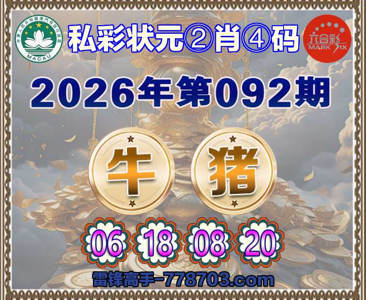 092期:《私彩状元》 💎②肖④码💎【猪】【06.18.08.20】开:牛06