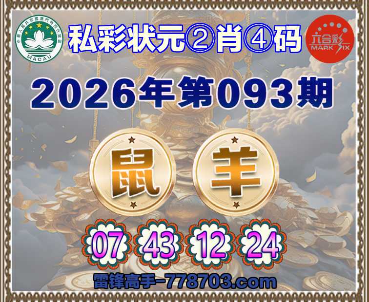 093期:《私彩状元》 💎②肖④码💎【鼠羊】【07.43.12.24】开:兔40