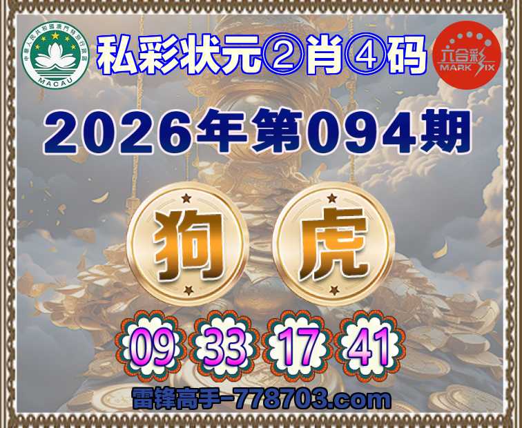094期:《私彩状元》 💎②肖④码💎【狗】【09.33.17.41】开:虎17