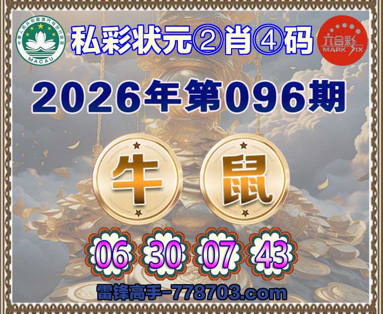 096期:《私彩状元》 💎②肖④码💎【牛】【06.30.07.43】开:鼠43