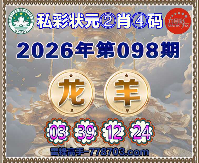 098期:《私彩状元》 💎②肖④码💎【龙羊】【03.39.12.24】开:虎17