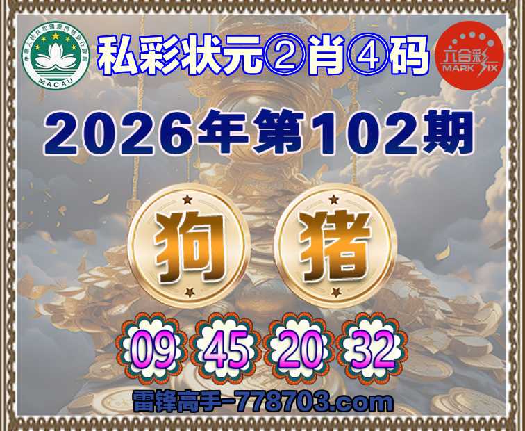 102期:《私彩状元》 💎②肖④码💎【狗】【09.45.20.32】开:猪20