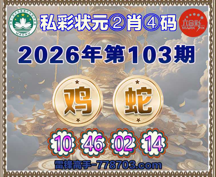 103期:《私彩状元》 💎②肖④码💎【鸡蛇】【10.46.02.14】开:牛06