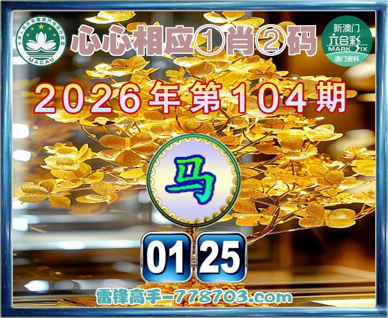 104期:〖心心相应〗 ①肖②码】【01.25】开:马01