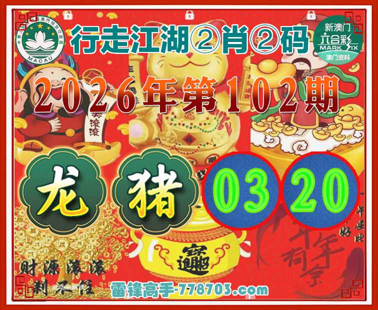 102期:【行走江湖】 ②肖②码【龙】【03.20】开:猪20