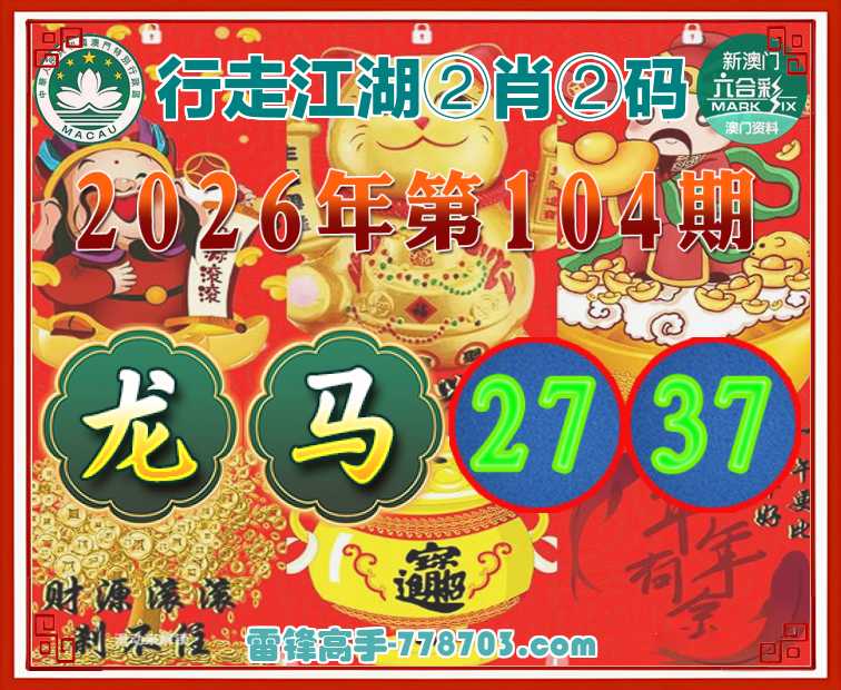 104期:【行走江湖】 ②肖②码【龙】【27.37】开:马01