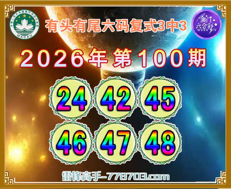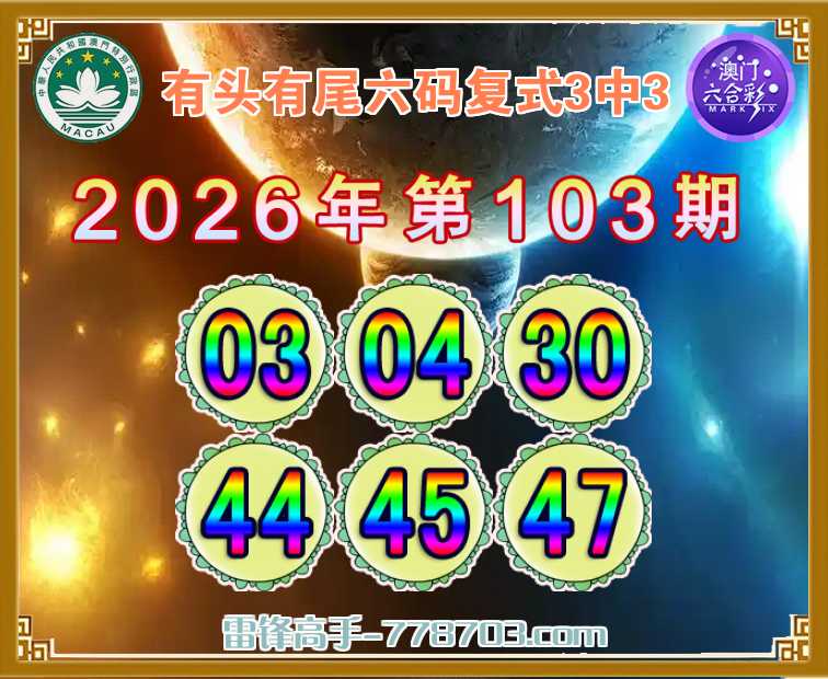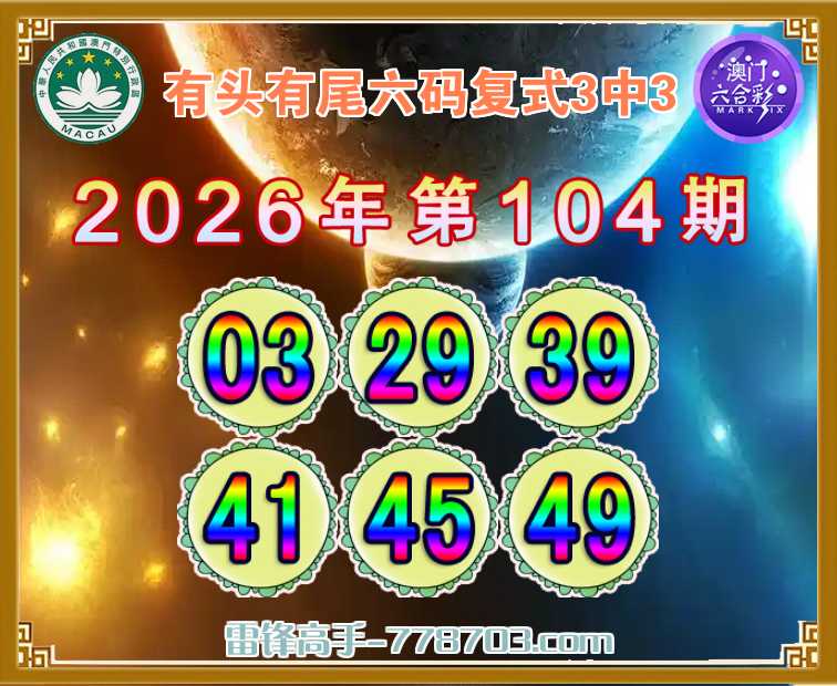 主题: 105期:澳门雷锋【有头有尾】【六码复式3中3】彩民赢彩必看✔
