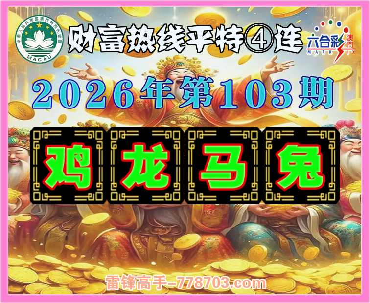 103期:【财富热线】 平特④连【鸡龙马兔】开:鸡34,龙03,马01,兔04
