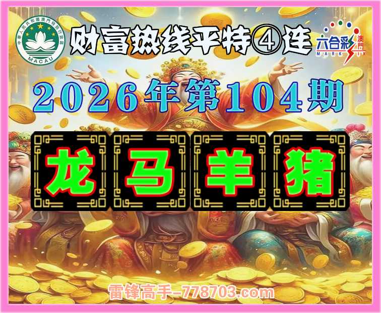 104期:【财富热线】 平特④连【龙马羊猪】开:龙39,马01,羊48,猪20