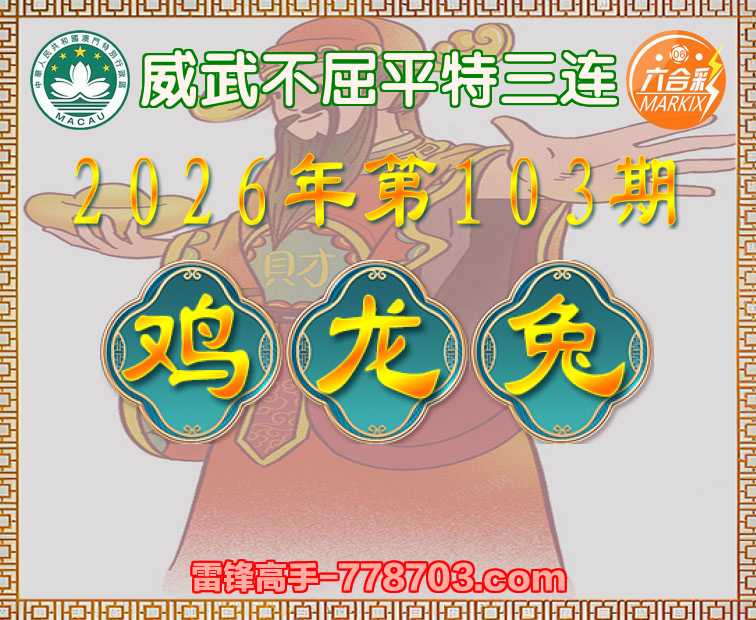 103期:〖威武不屈〗平特三连【鸡龙兔】开:鸡34,龙03,兔04